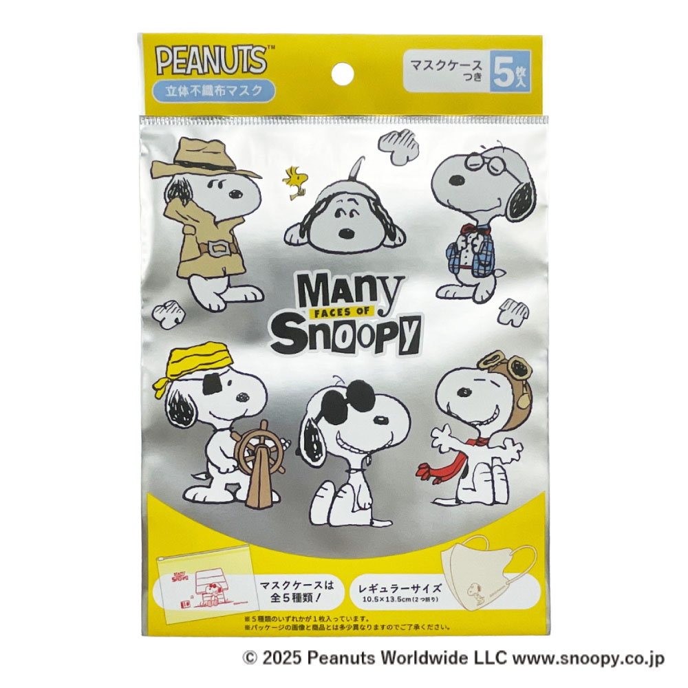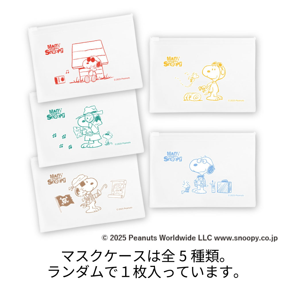 スヌーピーのエンボスデザイン付きです。スヌーピーのデザイン入マスクケースがランダムで1つ付いてきます。