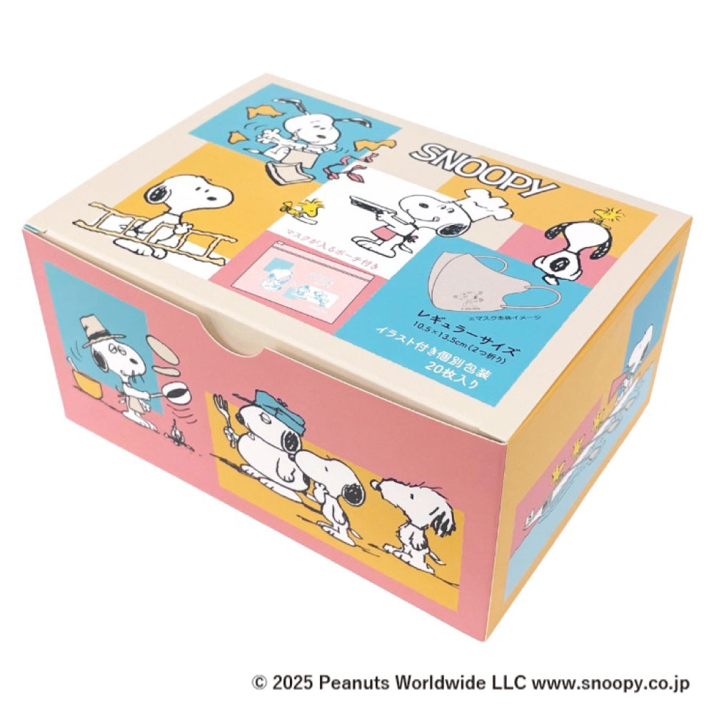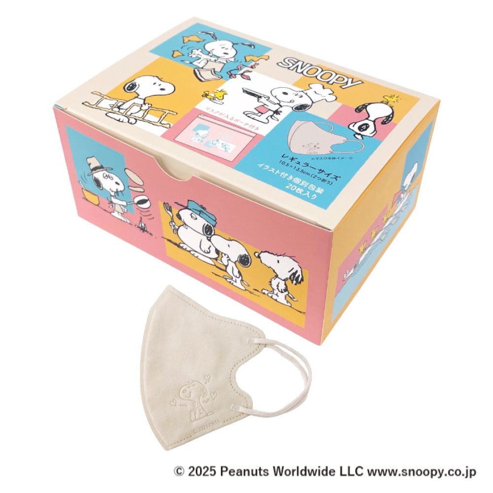 スヌーピーのエンボスデザイン付きです。スヌーピーのデザイン入マスクポーチが1つ付いてきます。